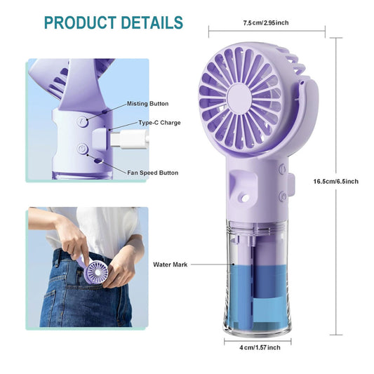 Handheld Misting Spraying Fan, rechargeable battery
